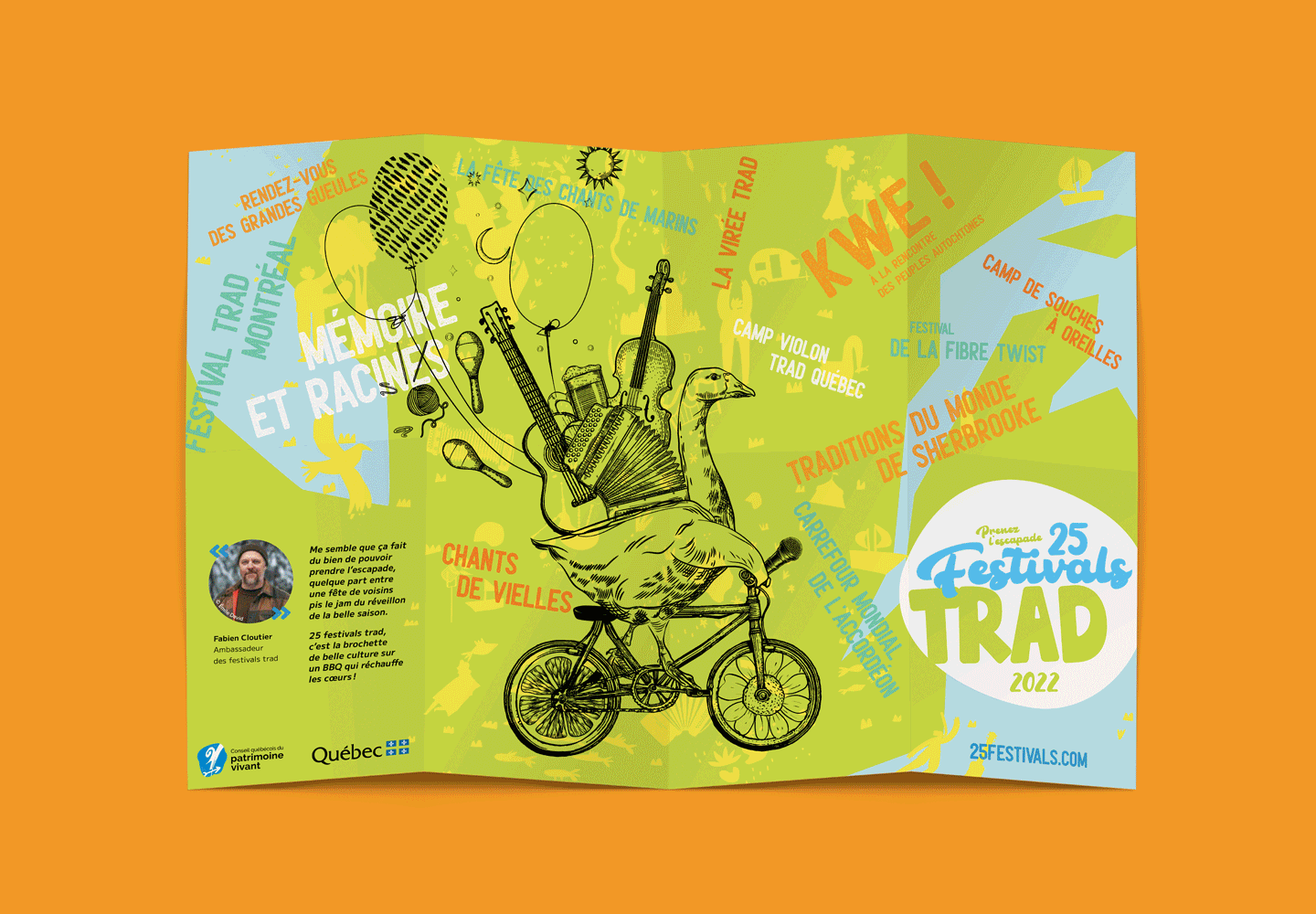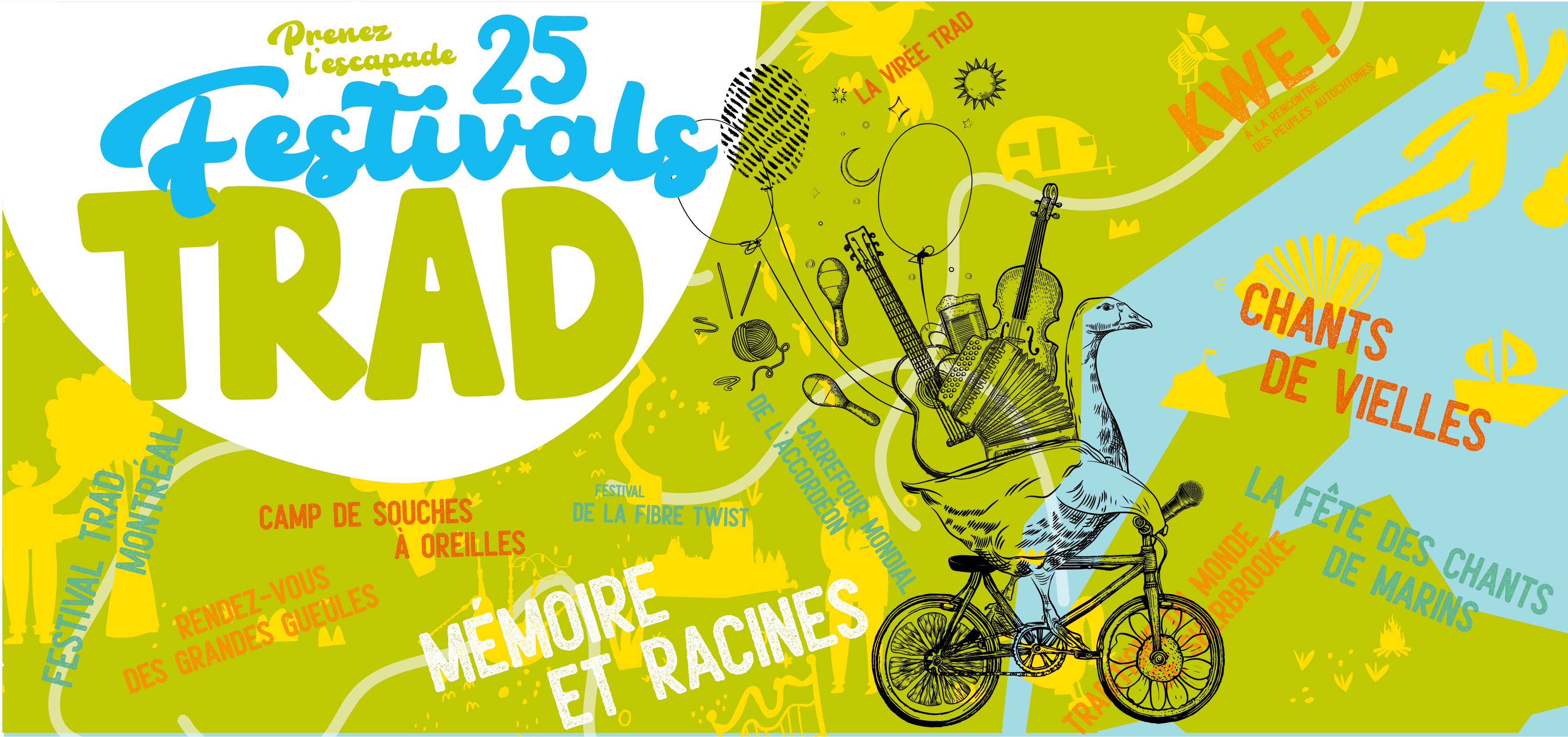 « Me semble que ça fait du bien de pouvoir prendre l’escapade, quelque part entre une fête de voisins pis le jam du réveillon de la belle saison. 25 festivals trad, c’est la brochette de belle culture sur un BBQ qui réchauffe les cœurs ! »